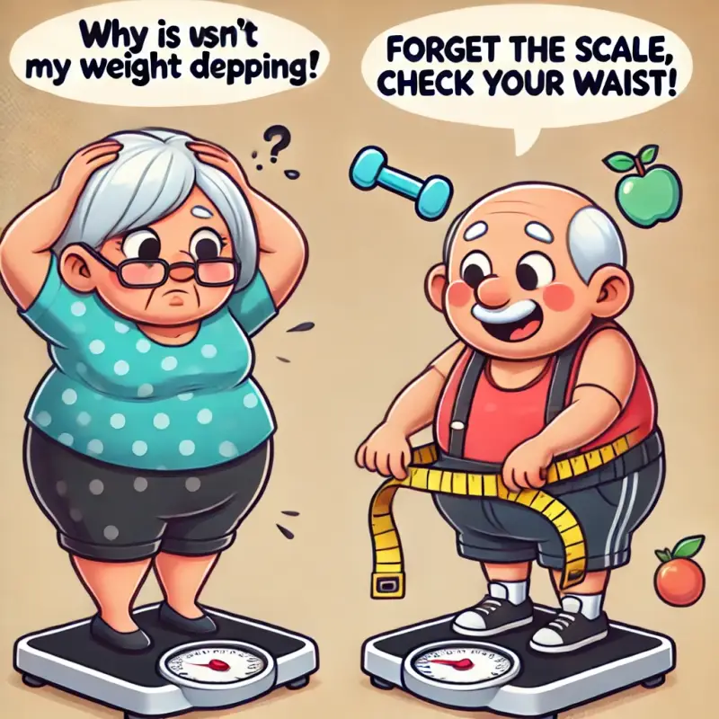 Als je sport of je eetpatroon aanpast, kan het zijn dat je vet verliest en tegelijkertijd spieren opbouwt. Spieren wegen meer dan vet, waardoor je op de weegschaal weinig verschil ziet. Toch is je gezondheid verbeterd en is je buikomvang vaak kleiner geworden, wat een teken is dat je op de goede weg bent.